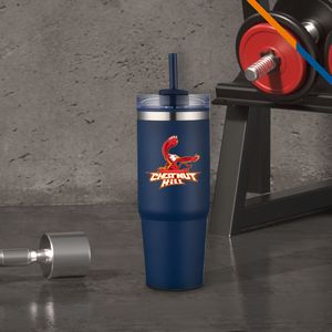 Ceta Travel Tumbler will be a fabulous drinkware for your daily hydration. This durable mug features double wall construction with PP plastic interior and SS exterior. Powder coating body and metal trim to create have a novel outlook. Clear slider lid with straw opening to prevent from potential spilling and splashes. Choose a color hue and customize with your logo or website to make this 30 oz. cup a unique gift for your clients and employees. Imprint drinkware only can be hand wash.BPA FREE, FDA certified. Complies with FDA, Food Grade. 9.45" H x 3.55" Diameter